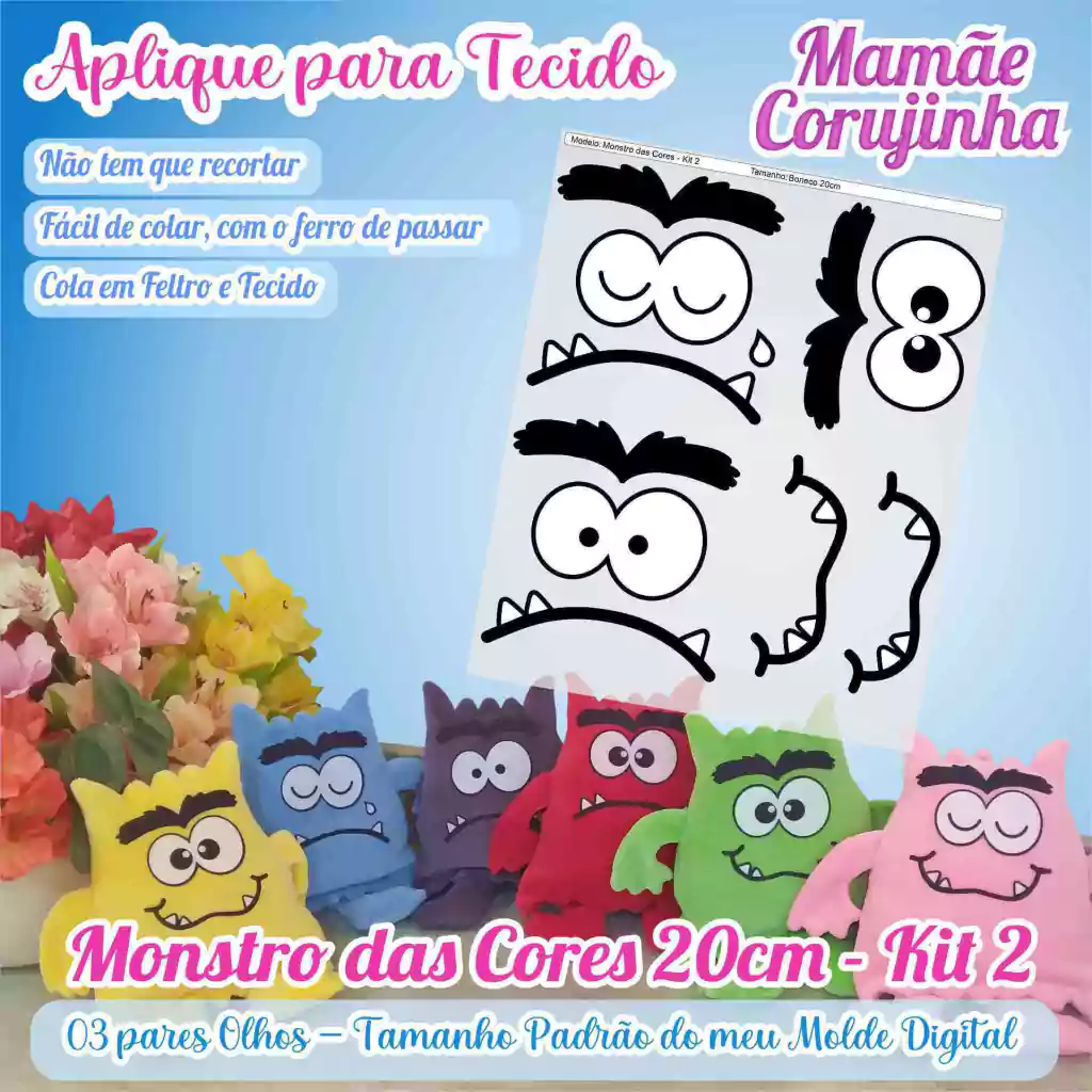 OLHOS - MONSTRO DAS CORES DE 20cm - KIT 1 OLHOS - MONSTRO DAS CORES DE 20cm - KIT 2 OLHOS - MONSTRO DAS CORES DE 20cm - KIT 1 + KIT 2
